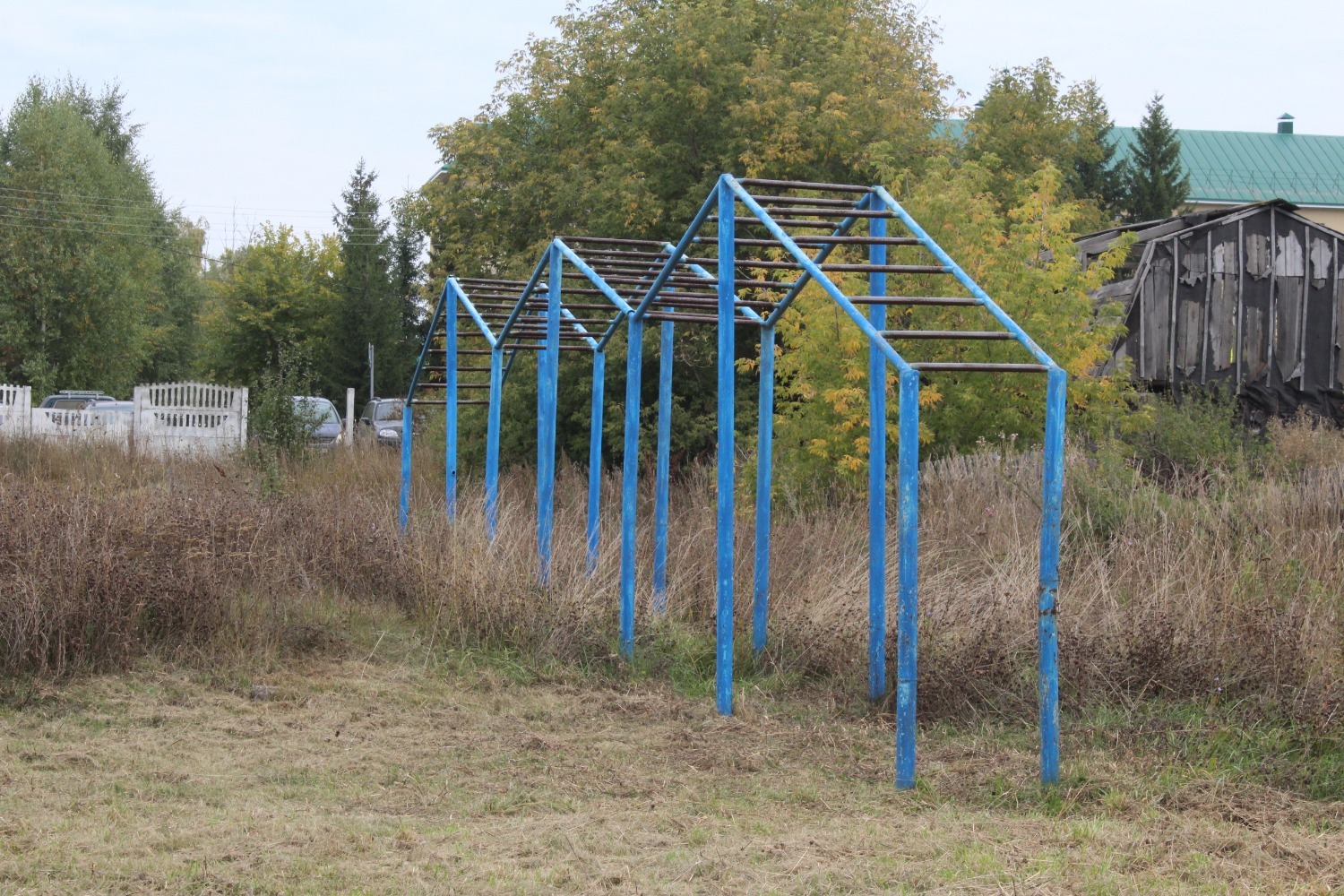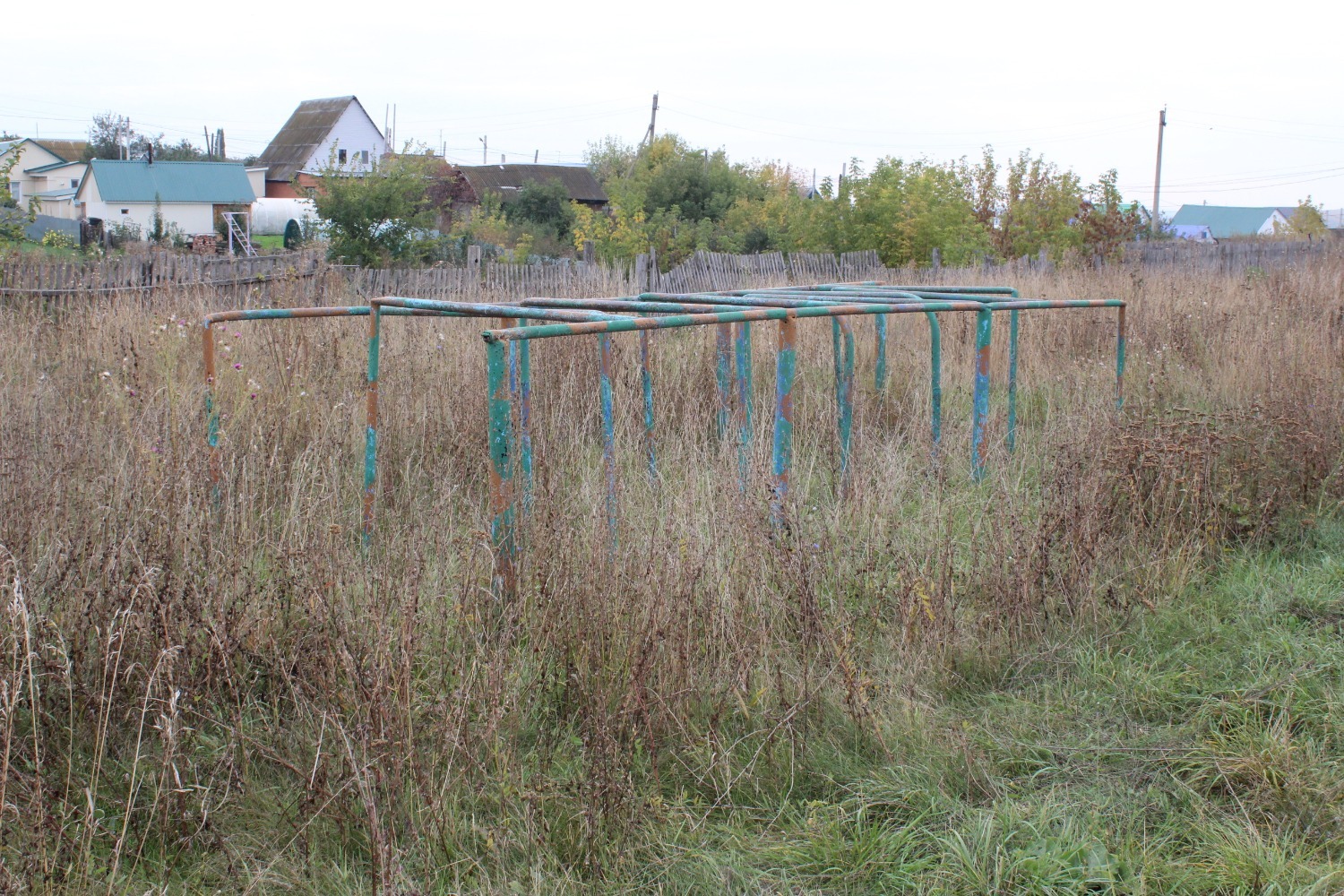 Все турники в зарослях сухой травы. Там и пройтись-то нельзя, не то, что проводить уроки.