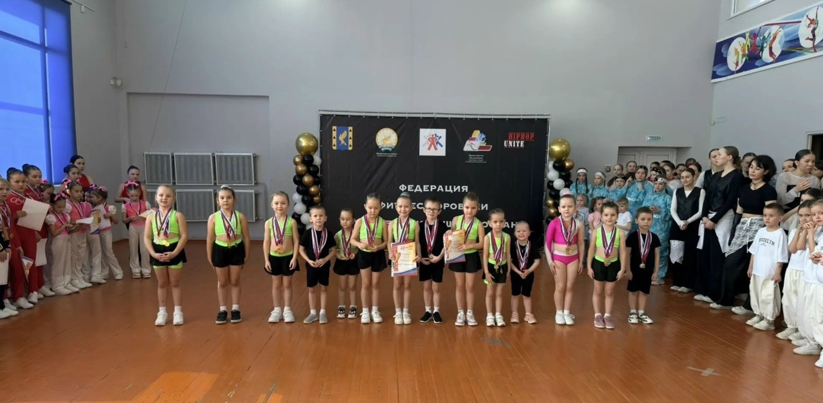 На зимних отборочных квалификационных спортивных соревнованиях по фитнес – аэробике, силовой аэробике и чир спорту в г. Кумертау наши спортсменки заняли следующие места: в силовой гимнастике (5-6 лет) Алиса Михайлова - 1 место, степ аэробика большая группа «Недетское время» - 1 место, танцевальная аэробика большая группа «Акварель» - 1 место, танцевальная аэробика большая группа «Веселый островок» - 3 место.