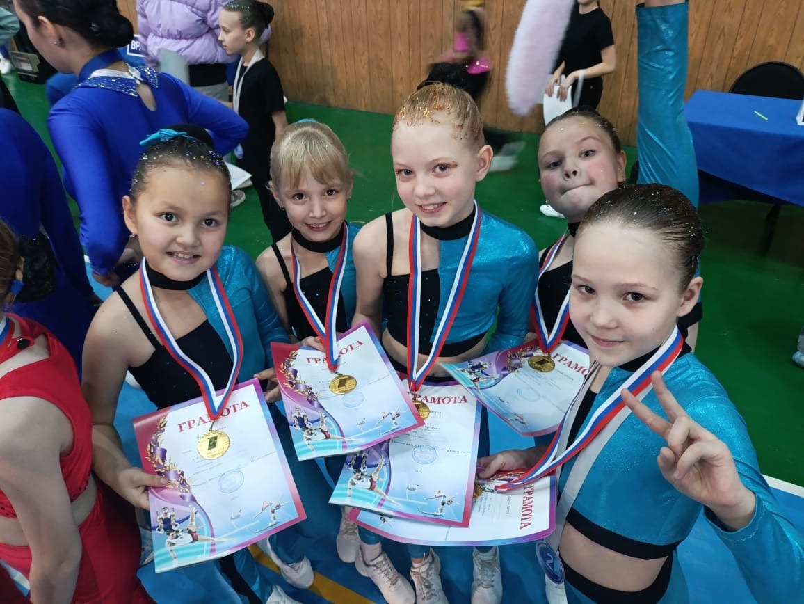 В категории степ-аэробика (3-5 лет) у нас второе место, в категории 11-13 лет - первое место.